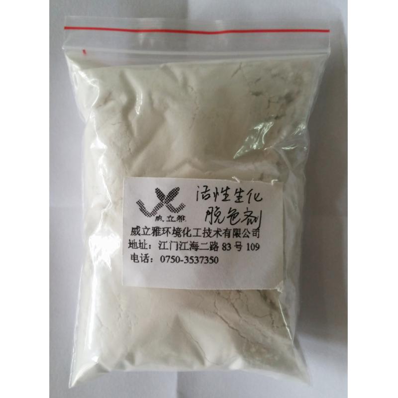 活性生化脱色剂是采用稀土资源研制出的低成本快速净水剂。选料精良,配方科学,性能优异。对COD、氨氮、色度、金属离子、磷、氯、离子粒子去除率高。能在恶劣的污水环境下培养出大量强化菌吸团,对原好氧池内污泥微生群无损害,而且使用时间越长,投放量少,能快速提高污泥浓度和氧化能力。在二沉池出水指标:色度、浊度、COD、BOD、SS大大降低。对N、P营养去除,减少臭气,且污泥易处理,矾花密实,易于脱水,比传统方法污泥量少。